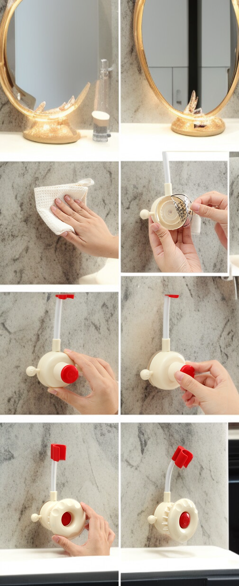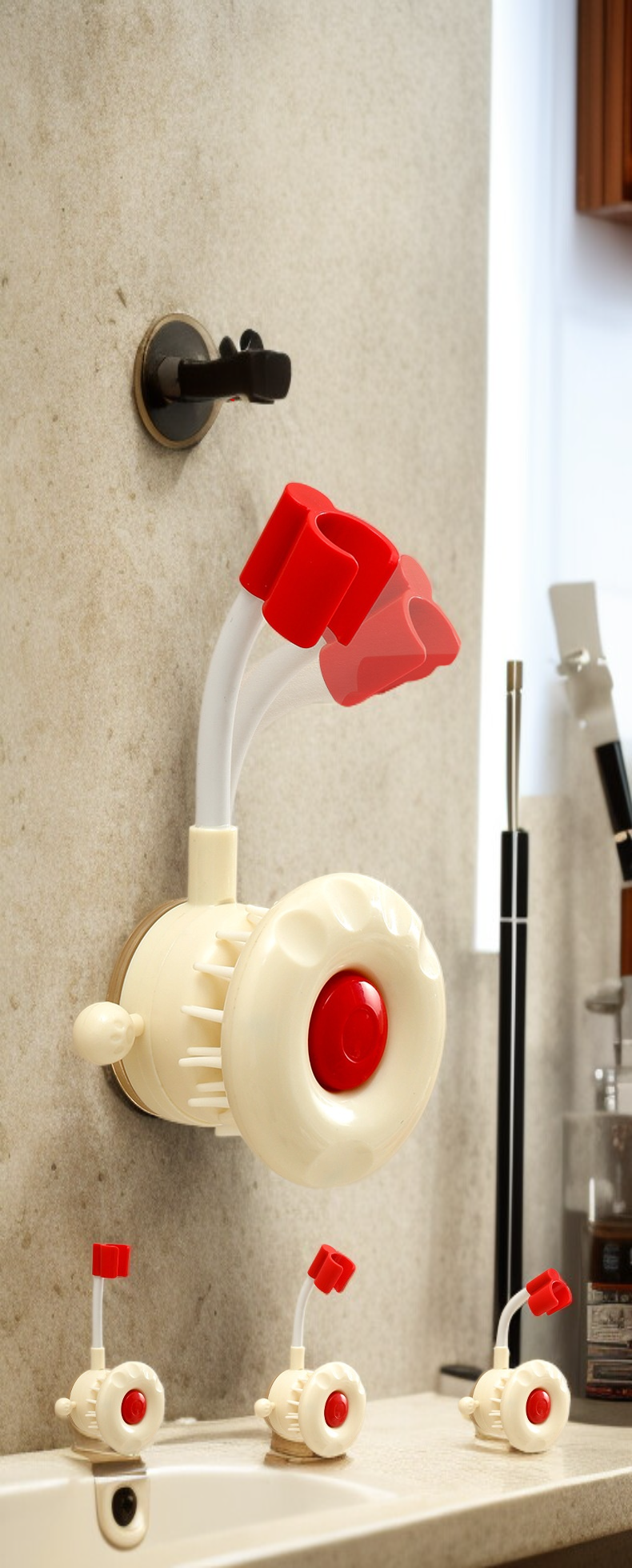 ● Die verstellbare Saugnapf-Duschkopfhalterung ermöglicht eine flexible Positionierung des Duschkopfs, sodass Sie den Wasserstrahl ganz nach Ihren Wünschen ausrichten können. ● Dank des starken Saugnapfs lässt sich die Halterung einfach und ohne Bohren an glatten Oberflächen befestigen, ideal für Mietwohnungen oder empfindliche Badezimmerwände. ● Die hochwertige Verarbeitung aus langlebigem Material garantiert eine sichere und stabile Befestigung des Duschkopfs, selbst bei häufigem Gebrauch und hoher Feuchtigkeit. ● Die Halterung ist mit den meisten handelsüblichen Duschköpfen kompatibel und eignet sich perfekt für Familien, Senioren oder Kinder, um den Duschkomfort zu erhöhen. ● Einfache Montage und Demontage ermöglichen einen schnellen Standortwechsel, sodass Sie die Halterung flexibel in verschiedenen Bereichen Ihres Badezimmers nutzen können.